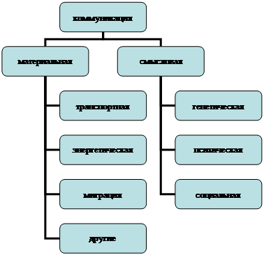 I. Материальная (транспортная, энергетическая, миграция населения, эпидемии и др.);