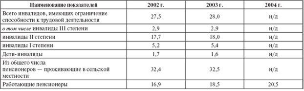 Численность пенсионеров и их отдельных категорий в 2002–2004 гг.