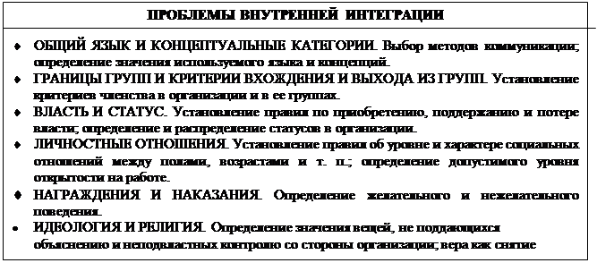 Таблица 1: Проблемы внешней и внутренней интеграции (по Э. Шайну).