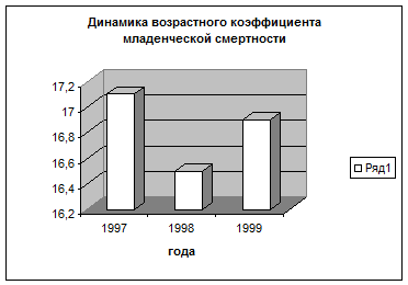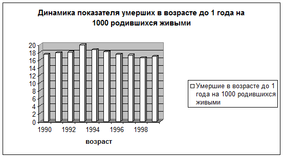 В 1993 г. впервые после 1976 г. показатель младенческой смертности вновь поднялся с 18 на 1000 родившихся в 1992 г. до 19,9 в 1993 г. Затем в 1999 г. он составил 16,9, что свидетельствует о том, что рост младенческой смертности прекратился. Но следует отметить, что ее уровень остается в 3 - 4 раза выше, чем в развитых странах мира.