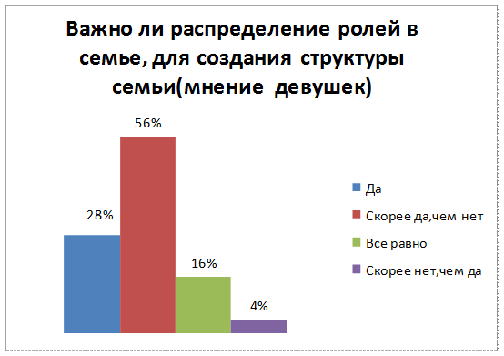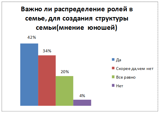 По итогам нашего исследования можно сделать вывод, что большинство опрошенных молодых людей понимают важность распределения ролей в семье.