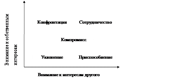 Все написанное выше можно объединить в схему 1[2, с. 33], по которой легко понять соотношение собственных интересов, и интересов к мнению оппонента при выборе определенной тактики.
