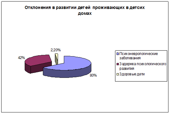 Также составляя программу для изучения личности на разных возрастных этапах, следует отметить, 80% детей страдают психоневрологическими заболеваниями, 42% имеют задержку психического развития, у многих отмечены заболевания органов дыхания, только где-то 2,2% здоровы.