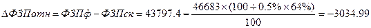 ФЗПп = ЧР1 х Д1 х (П1 -П0) х ЧЗП0= 4537 * 208 * (7,6- 7,8) * 0,807 = - 150991,36