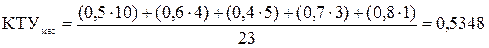 На конец месяца КТУ рассчитывается как среднеарифметическое по формуле: