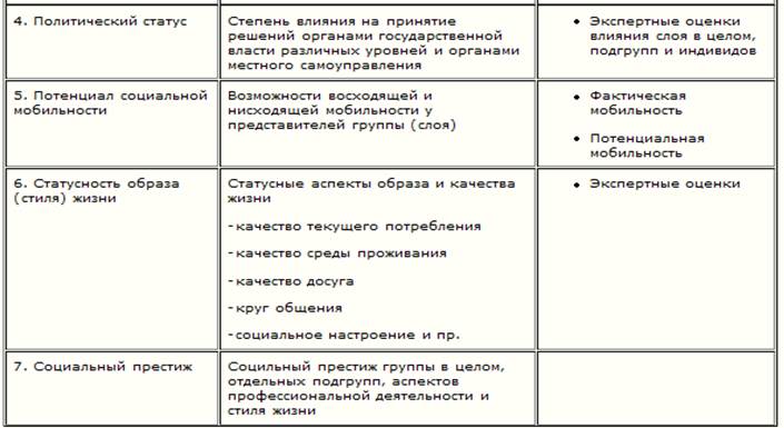 Другой Американский социолог предложил стратификацию по 6-ти параметрам: