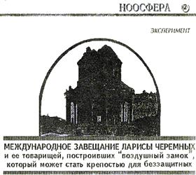 Нина Максимова(газета "Сибирское здоровье сегодня", март 1996 г.): "Международное завещание Ларисы Черемных и её товарищей, построивших "воздушный замок", который может стать "крепостью" для беззащитных".