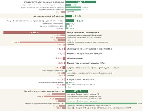 Кроме динамики объемов крупных статей расходов, интересно также, какие подстатьи расходов изменились значительнее всего.