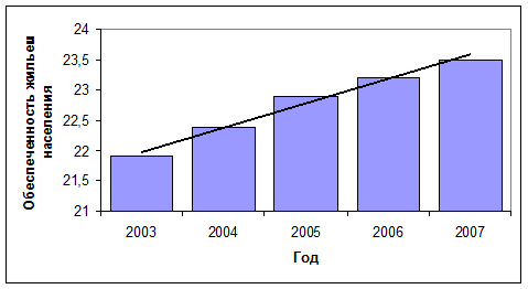 Рис.3 Динамика изменения обеспеченности жильем населения Калужской области за 2003-2007 гг