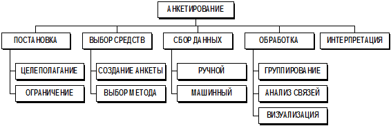 Анкетирование проводится для достижения не одной, а нескольких целей. Важности целей могут быть различными. Некоторые из них могут противоречить друг другу. Во избежание этого были сформулированы все цели и увязаны в единую систему. В противном случае был риск недоучесть возможные ограничения, пропустить важные вопросы и, в конечном счете, получить не совсем то, что хотелось бы изначально. Анкетирование в целом может рассматриваться как решение некоторой задачи. Выбор средств достижения целей фактически является этапом постановки задачи исследования. Исходя из сформулированных целей и возможностей, разработана форма представления исходных данных (анкета) и выбраны методы, которые могли бы быть применены для решения этой задачи. Для повышения степени достоверности получаемых ответов и обеспечения последующей обработки при разработке анкеты был соблюден ряд простых, но очень важных правил. Анкета содержит небольшое число вопросов, чтобы время опроса не превышало пределов времени, в течение которого опрашиваемый в состоянии сосредоточиться на одной теме и заниматься одним видом деятельности. Формулировка вопросов предельно простая, конкретная и ясная. Варианты ответов покрывают все возможные трактовки и допускают ранжирование по степени наличия или отсутствия некоторого свойства, ассоциируемого с данным вопросом. Из числа первоначально подготовленного списка вопросов устранены те, на которые невозможно получить достоверных ответов. Из списка вопросов убраны такие, на которые все опрашиваемые будут давать один и тот же ответ, независимо от того, положительный он либо отрицательный. Такие вопросы неинформативны, по крайней мере, на выбранном множестве анкетируемых. Вопросы, ответы которые не удается ранжировать, обычно являются комплексными и их желательно разбить на отдельные подвопросы, предполагающие утвердительный или отрицательный ответ, либо допускающие ранжирование, что и было сделано.[31] Анкета включает в себя вопросы, объемлющие разные интересующие стороны проблемы. Причем поставлены вопросы как о характеристиках самого явления (его сущности, количественных и качественных сторонах), так и об отношении к нему анкетируемых. Таким образом, создается большой объем информации, дающий возможность увидеть иногда самые тонкие грани проблемы и отношения к ней аудитории. Правильное построение вопросов анкеты позволяет надеяться на получение достаточно полных ответов, содержащих достоверную информацию.