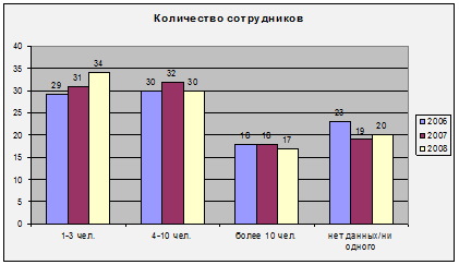 При этом в последние несколько лет наблюдается тенденция к снижению доли занятых в некоммерческом секторе (с 0,8% в 1999г. и начале 2000-х до 0,6% последние три года). С определенной долей уверенности можно предположить, что уменьшение доли занятых в НКО-секторе за последние 7-8 лет (2000-2007 гг.) связано с укреплением двух других секторов – государственного и бизнес-сектора, которые в эти годы активно