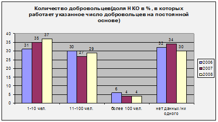 Необходимость анализа деятельности и развития НКО до недавнего времени практически не поднималась. А подниматься стала с целью усиления гражданского общества, причём с желания не только международных наблюдателей, но и с желания российского правительства. Статьи и заметки в газетах об НКО наблюдались всегда, но именно их деятельность и проблемы этой деятельности мешающей, во главу угла ставились нашими властями крайне неохотно. Государство с недавних пор стало заботиться о подготовке проектов, выявляющих основные проблемы и нюансы работы некоммерческого сектора[18] . Такие исследования помогают более объективно видеть ситуацию о состоянии НКО и, в частности, его кадрового потенциала.