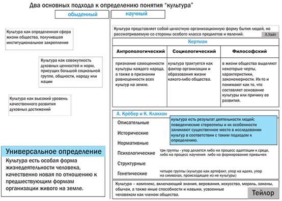 Если проанализировать наиболее распространенные подходы к определению культуры, принятые в современной науке, можно выделить следующие составляющие: культура - это: [3]