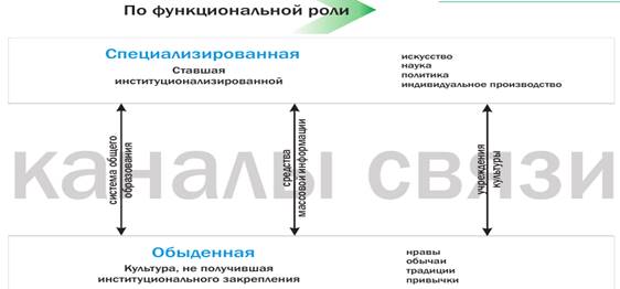 Исходя из этого критерия выделяют подвиды духовной культуры: