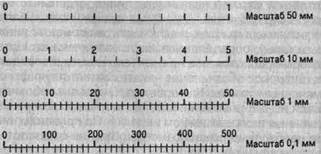 Масштабом равномерной шкалы называется длина отрезка (графический интервал), принятого за единицу и измеренного в каких-либо мерах. Чем меньше масштаб (рис. 5.3), тем гуще располагаются на шкале точки, имеющие одно и то же значение. Построить шкалу -это значит на заданном носителе шкалы разместить точки и обозначить их соответствующими числами согласно условиям задачи.