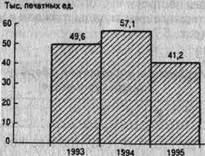 Рис. 5.8. Динамика выпуска книг и брошюр в одном из регионов России за 1993-1995 гг.