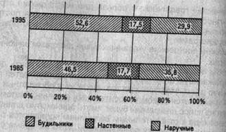 Рис. 5.20. Доли вкладов граждан в Сбербанк и коммерческие банки в одном из городов в 1995 г. (%)