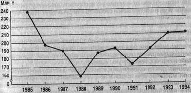 Рис. 5.18. Динамика валового сбора зерновых культур в регионе за 1985-1994 гг.
