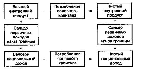 Взаимосвязь между показателями валового и чистого внутреннего продукта и валового и чистого национального дохода показана на рис. 1.