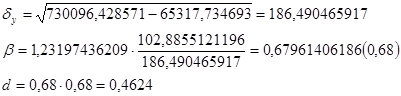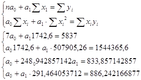 y5 = 527,17 + 1,23 * 282,2 = 874,276