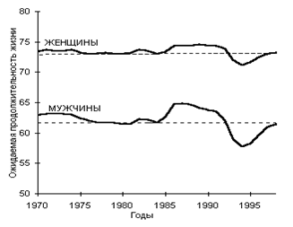Средняя ожидаемая продолжительность жизни при рождении – это число лет, которое проживает один человек в среднем из данного поколения родившихся при условии, что на всем протяжении жизни этого поколения смертность в каждой возрастной группе будет оставаться неизменной на уровне расчетного периода.