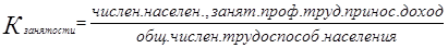 Иногда в числителе численность экон. активного насел-я. В любом случае высок. ур-нь зан-ти свидетельствует о низкой ее эф-ти, т.к. не обеспечивает достаточного ур-ня произв-ти труда и ее оплаты на достойном ур-не.
