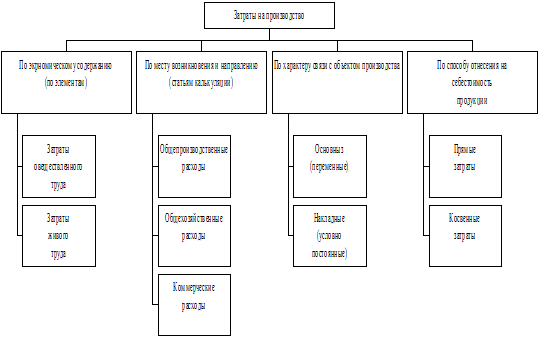 Необходимость изучения структуры себестоимости обусловлена тем, что затраты предприятия на производство продукции различны по своей экономической природе и величине, а следовательно, и по удельному весу в полной себестоимости. В связи с многообразием издержек производства их принято группировать по различным признакам в качественно однородные совокупности (рис. 1.1).