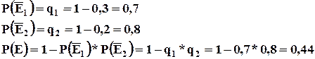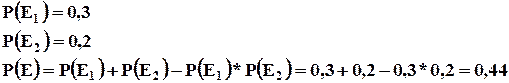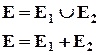 Суммой или объединением событий Е1 и Е2 , называют событием Е, состоящим в появлении события Е1 или Е2 или обоих этих событий.