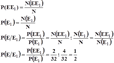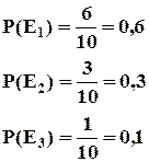 Если обозначить число исходов благоприятствующих событию n(E), то вероятность события Е будет выглядеть