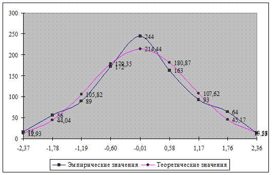 В связи с тем, что табличные значения рассчитаны для непрерывно изменяющегося признака с дисперсией равной 1, необходимо скорректировать полученные частости на фактическую величину интервала и среднеквадратическое отклонение.