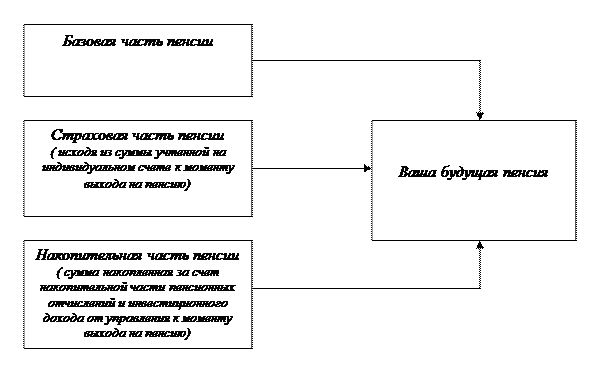Новая схема выглядит приблизительно так В соответствии с Федеральным законом от 17.12.01 г. № 173-ФЗ " О трудовых пенсиях в Российской Федерации" трудовая пенсия складывается из трех составляющих: