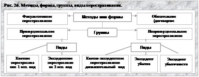 Рис. 26. Методы, формы, группы, виды перестрахования.