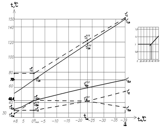 6. Расчет графика сетевой воды на отопление и вентиляцию