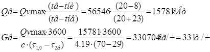 Gпод л = β∙Ghmax , кг/с, где b=0,8