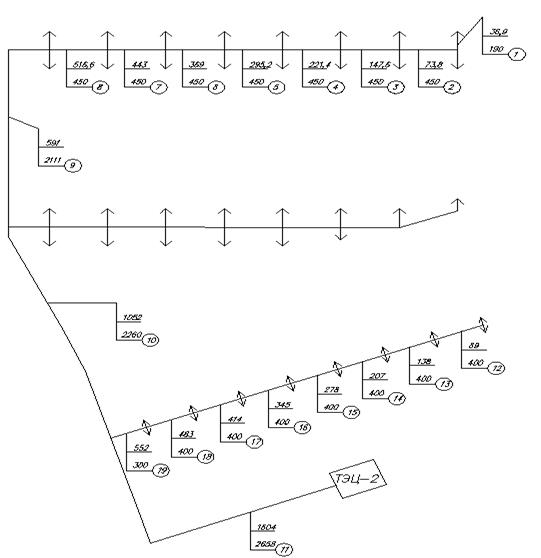 Зимний расчетный режим строится исходя из гидравлического расчета водяной тепловой сети.