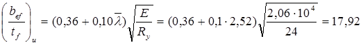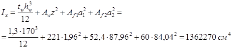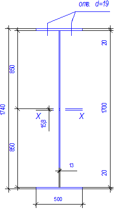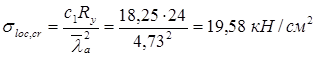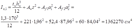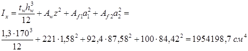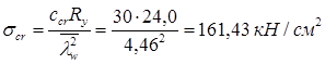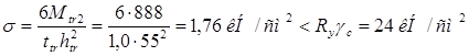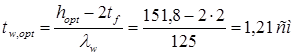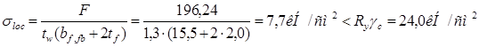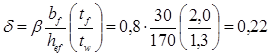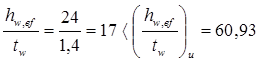Прочность стенки на срез не обеспечена. В пределах оголовка увеличиваем толщину стенки до tw ’ = 1,8 см, тогда