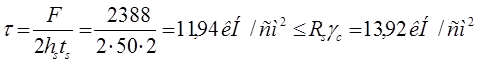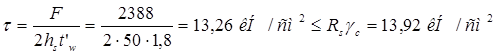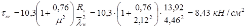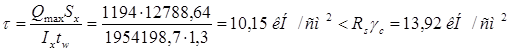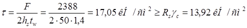 Прочность стенки на срез определяется по формуле
