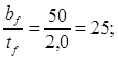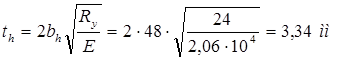 Ширина ребра жесткости должна быть не менее bh = hw /30 + 40 = 280/30 + 40 = 49 мм, а толщина