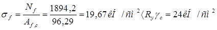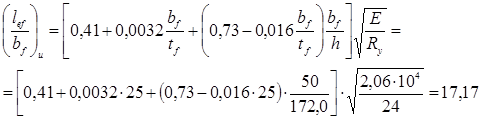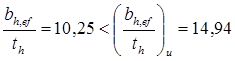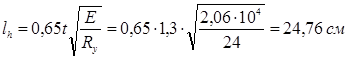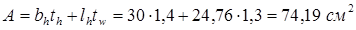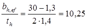 Принимаем толщину опорной плиты оголовка tbp = 20 мм. Расчетная ширина опорного ребра оголовка ls , ef = bh + 2tbp = 30 + 2*2,0 = 34 см.