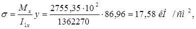По сортаменту (ГОСТ 26020-83) подбираем двутавр с параллельными гранями полок №35Б1, для которого I = 10060 см4 , W = 581,7 см3 , g = 38,9 кг/м