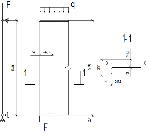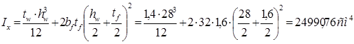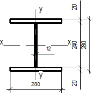 · сечение колонны: полки bf xtf = 280x20 мм, стенка hw xtw = 240x14 мм;