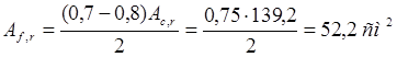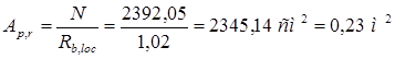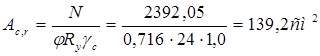 Площадь верхнего обреза фундамента определяем из формулы