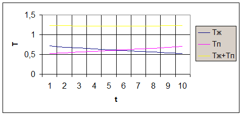 Установим в какой степени снижаются затраты Тж по мере роста Тп. Для этого найдем отношение (Тж)”=dТж/dТп (данное соотношение отражено в таблице 1.1) Мы видим ,что значение отношения возрастает => реализуется возрастающий тип отдачи дополнительных затрат овеществленного труда.