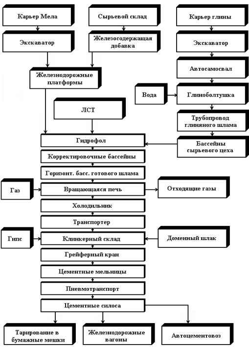 Рис 4.2. Пооперационная структура технологического процесса производства портландцемента: