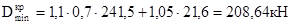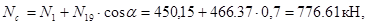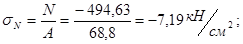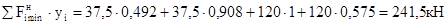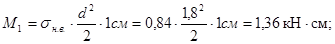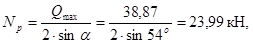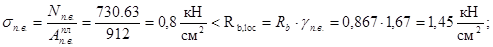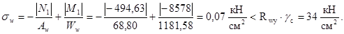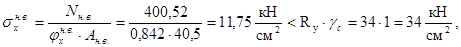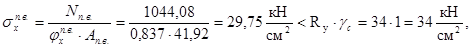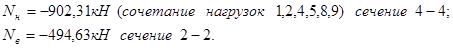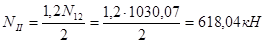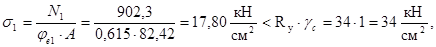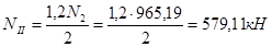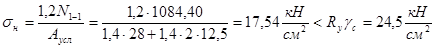 Проверяем прочность узла нижнего пояса фермы: нормальная сила в сечении 1-1: