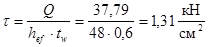 Швы, прикрепляющие листовую накладку к поясу, рассчитаем на усилие в накладке: