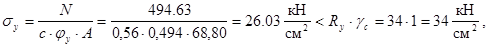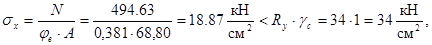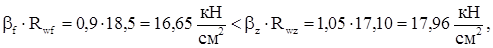 – расчетное сопротивление стали фасонки срезу, где по табл. 51 СНиП II-23-81* для стали С255 при толщине листового проката свыше 10 до 20 мм