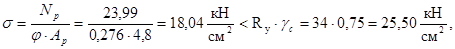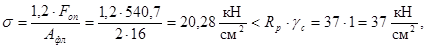 Для крепления опорного фланца к колонне принимаем 8 болтов нормальной точности М20 класса прочности 5.6, диаметр отверстий под болты dотв =23 мм.