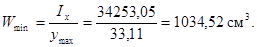 где а - расстояние от центра тяжести сечения до его крайней нижней точки.