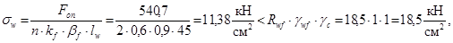 . По принятым габаритам фасонки принимаем длину шва ![]()